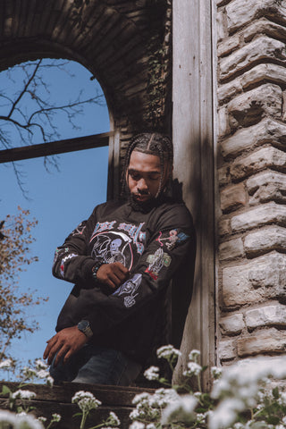 One of our LIMITED EDITION crewnecks, this is made out of a luxurious medium weight 100% cotton fabric. It features embroidery on both sleeves, and a heavy fill that makes it more comfortable to wear.